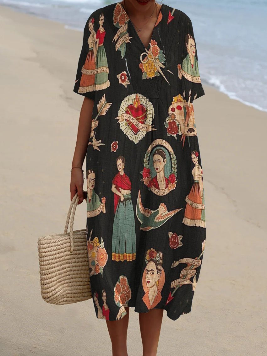 Artist Frida Decorative Patterns Flowy Dress