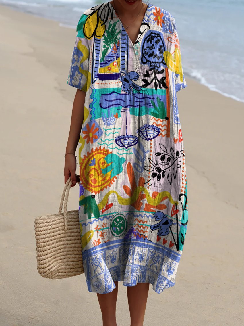 Casual Mixed Decorative Pattern Flowy Dress