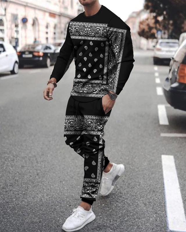 Men's casual cashew color matching long-sleeved sports set 007