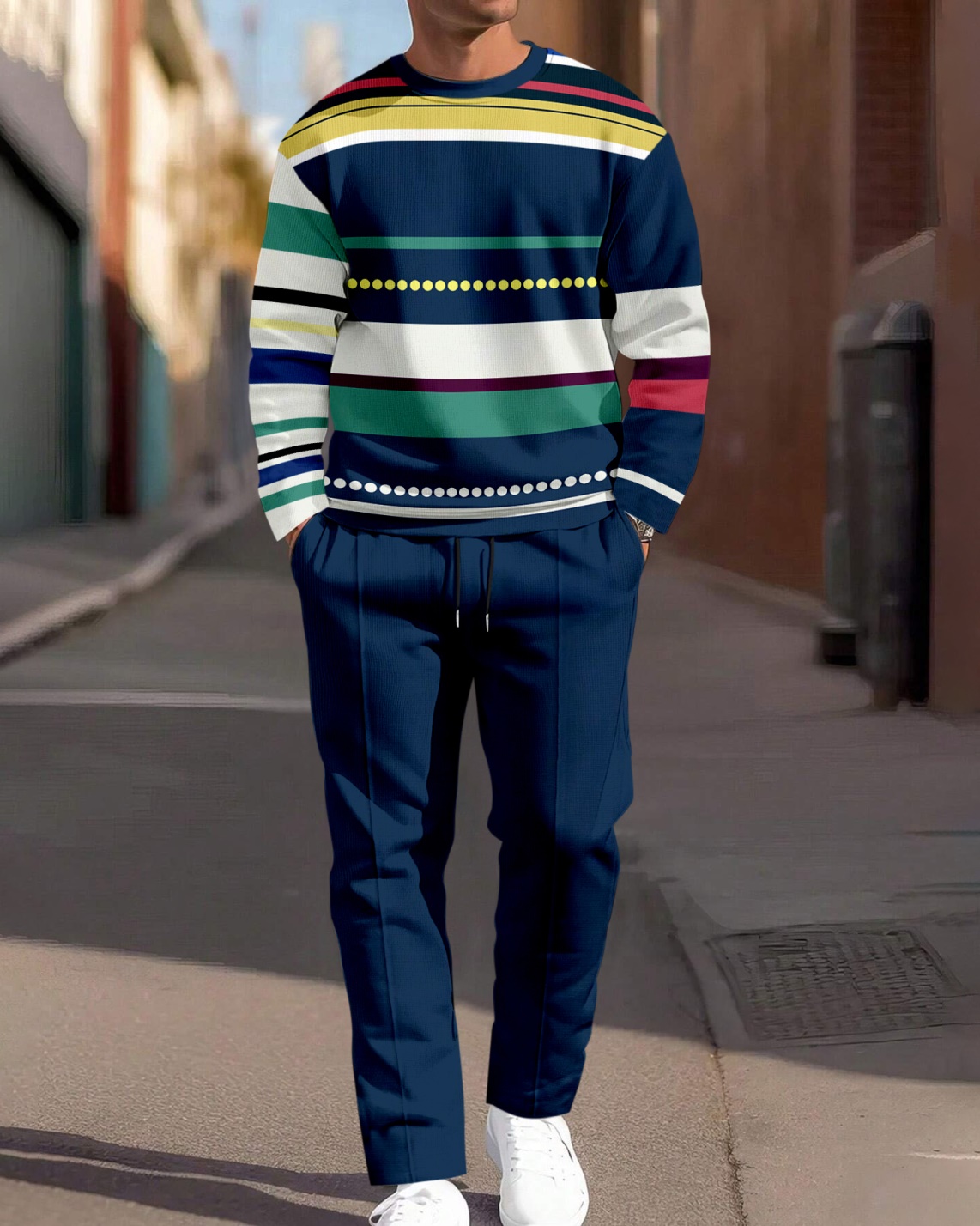 Men's Colorblock Round Neck Casual Sports Set 011