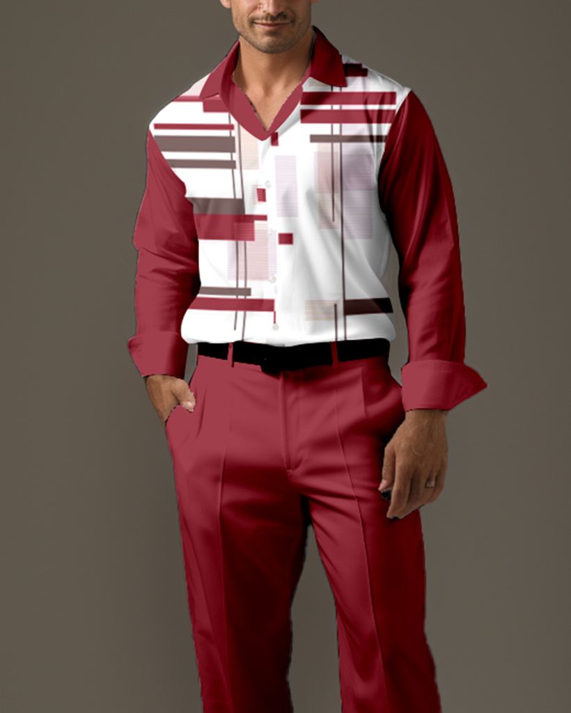 Men's Gradient Print Long Sleeve Shirt Walking Suit 519
