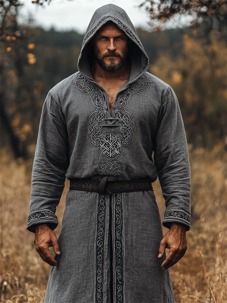 Men's Viking Celtic Embroidered Hooded Linen Long Tunic