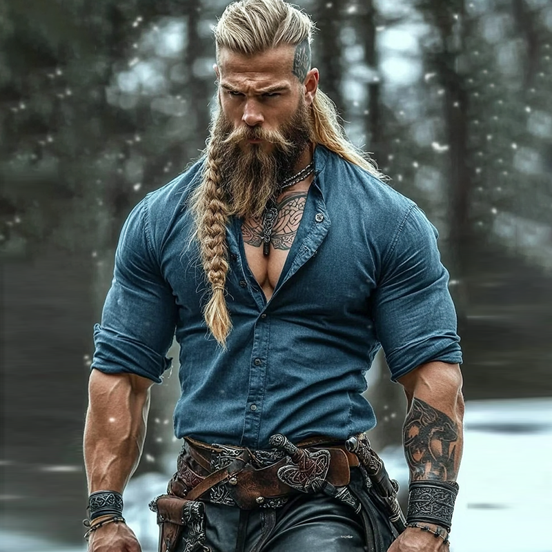 Men's Viking Cotton And Linen Button Down Casual Shirt