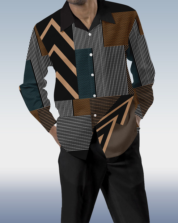 Suitmens Men's Color Block Print Long Sleeve Walking Suit 197