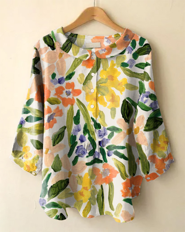Vintage Floral Print Long Sleeve Peter Pan Collar Shirt
