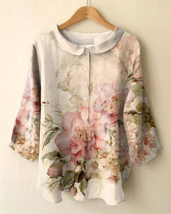 Vintage Long Sleeve Peter Pan Collar Floral Print Shirt