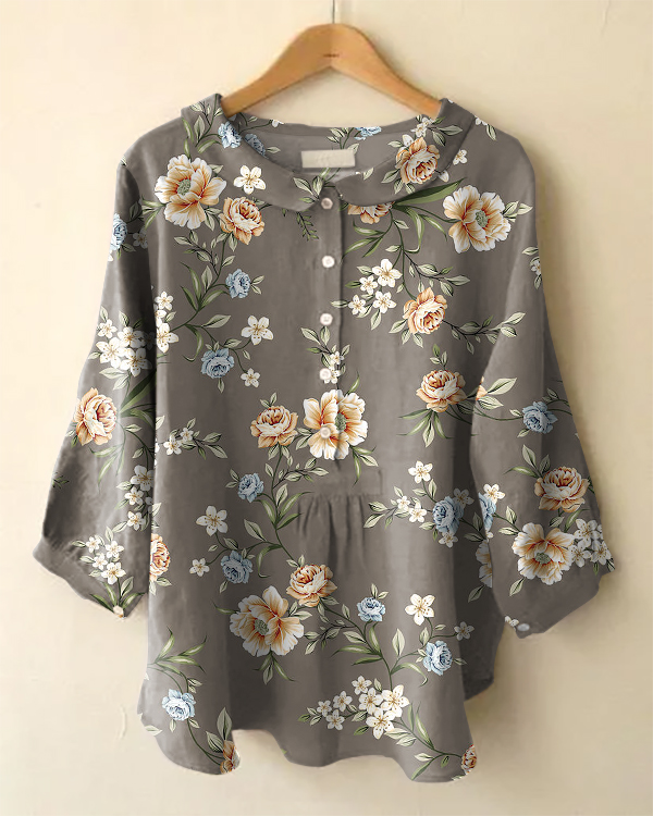 Vintage Long Sleeve Peter Pan Collar Floral Print Shirt
