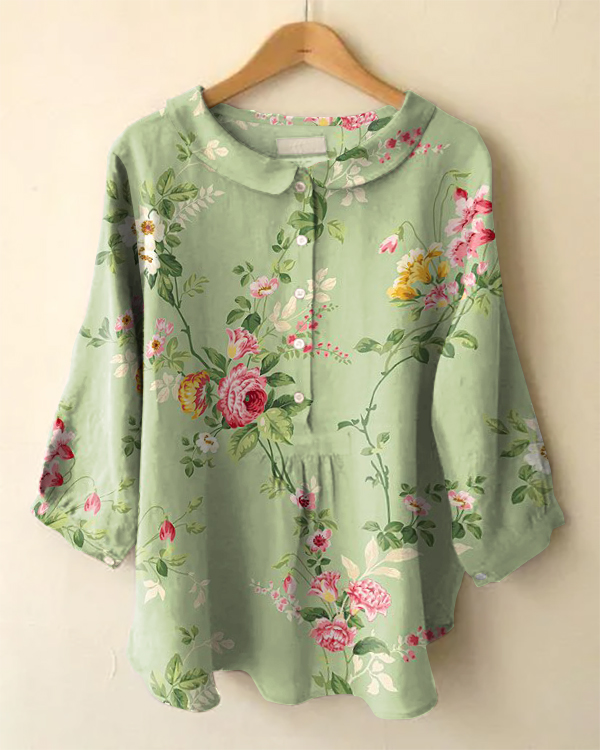 Vintage Long Sleeve Peter Pan Collar Floral Print Shirt