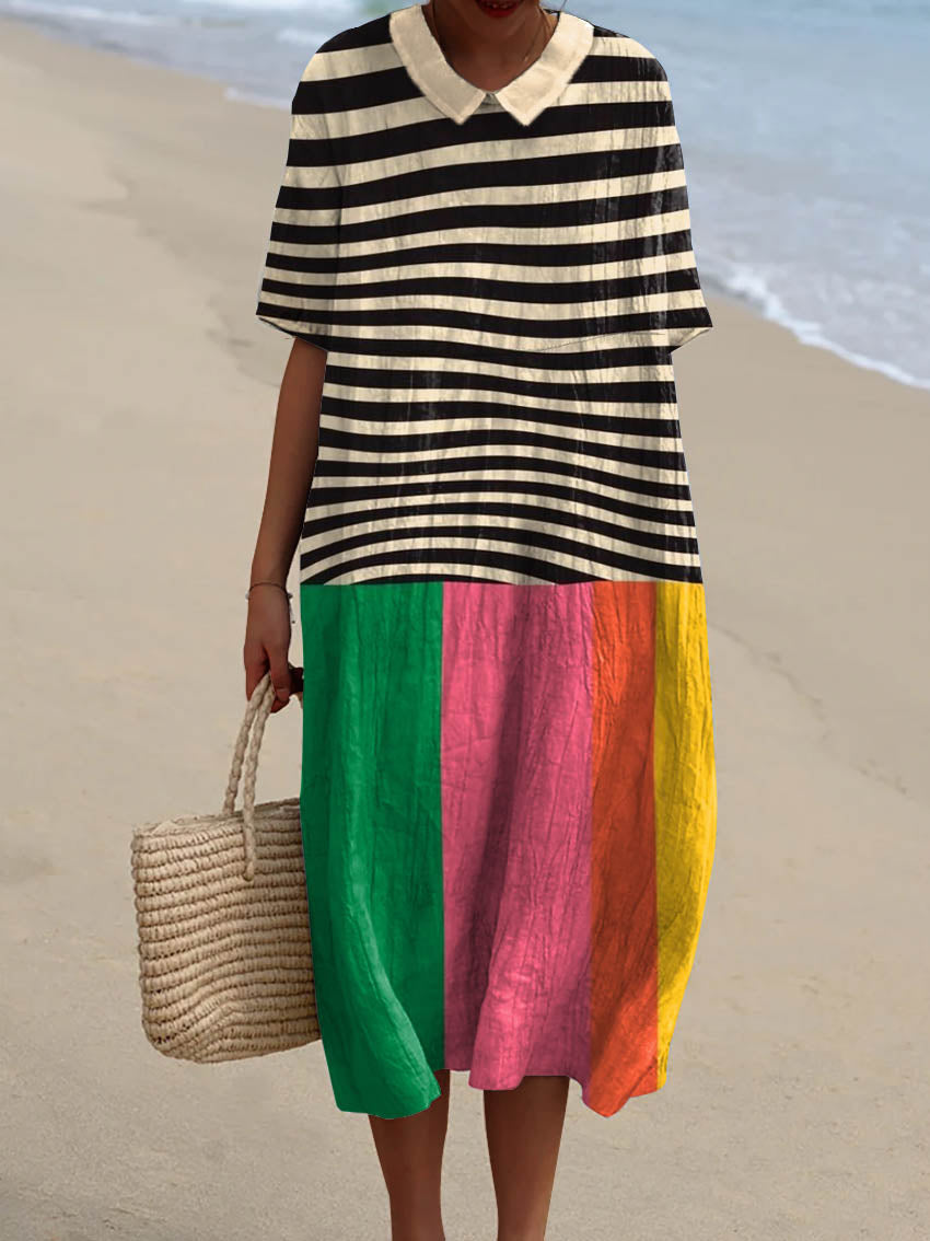 Women's Abstract Geometric Pattern Art Print Pocket Linen Dress