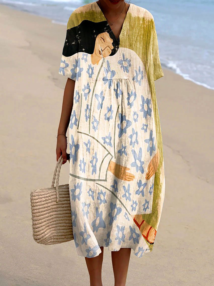 Women's Abstract People Minimalist Art Print Flowy Dress