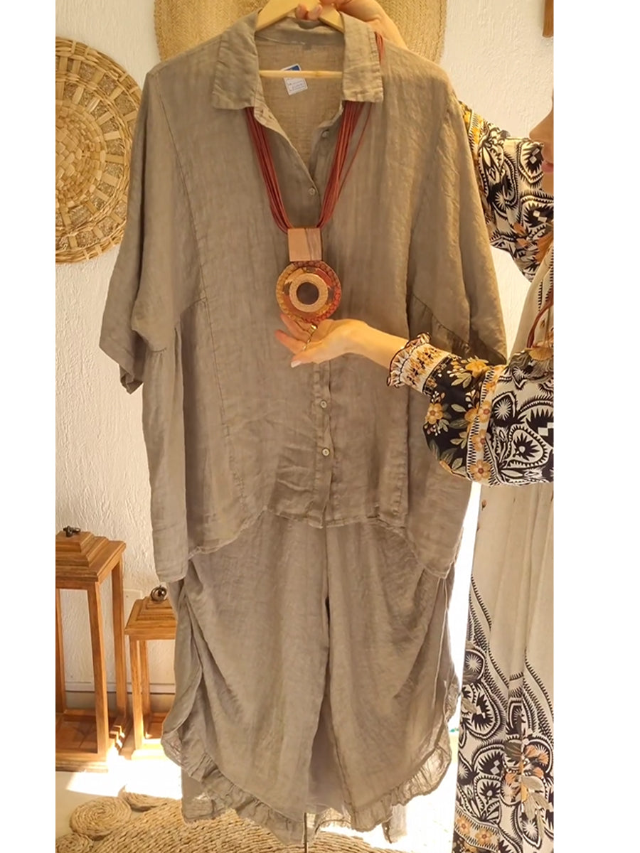 Women's Casual Cotton and Linen Shirt and Pats Suit