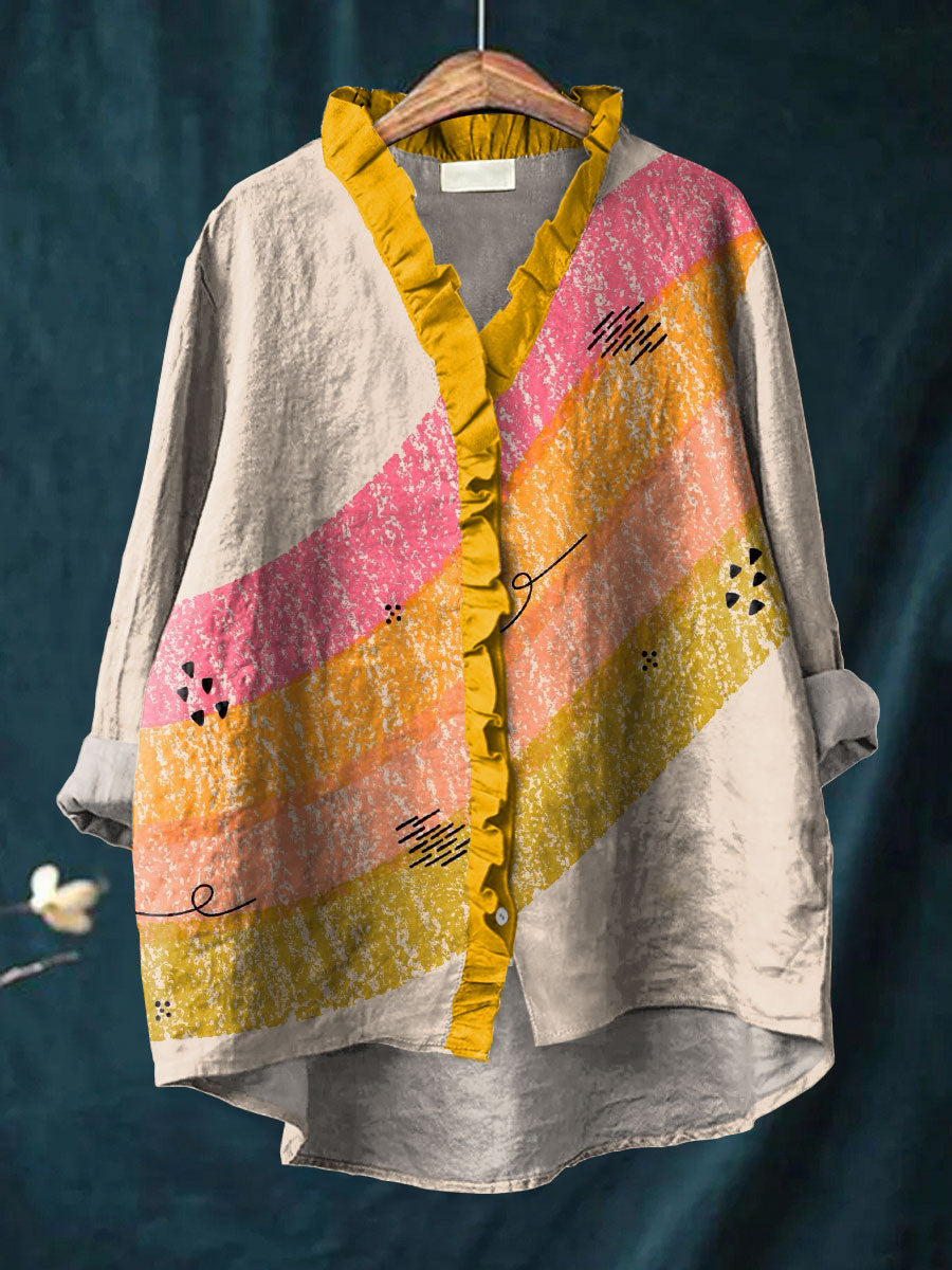Introducing the perfect addition to your wardrobe - the Niya Ruffle Shirt. This beautiful shirt, made with cotton a nd linen, features concealed buttons, long sleeves. The front frill and neck along with the curved hem add a touch of femininity to this dressy yet casual shirt. With a regular fit, it's the perfect blend of style and comfort.