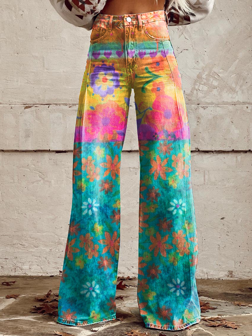 Women's Floral Print Casual Wide Leg Pants