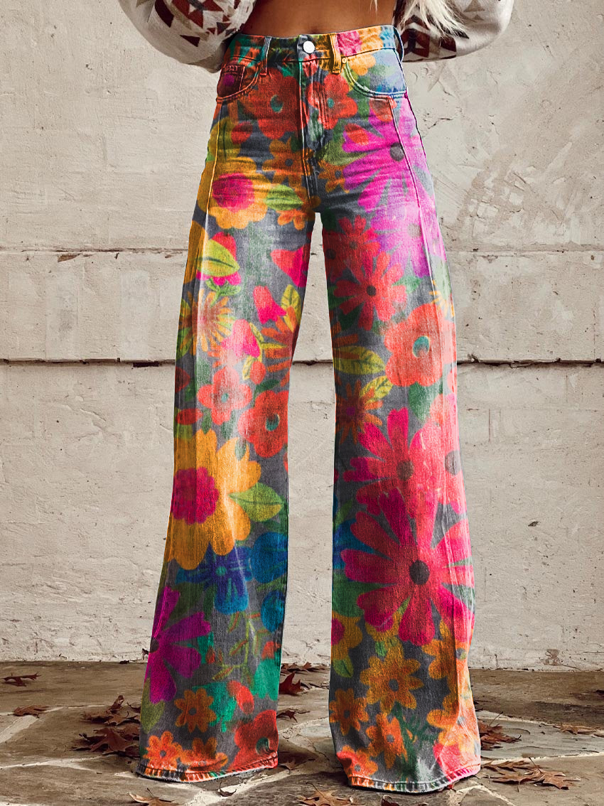Women's Vintage Floral Art Casual Wide Leg Pants