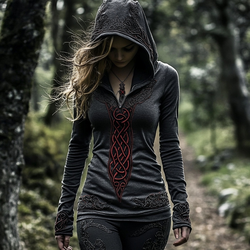 Women's Viking Jacquard Celtic Knot Art Hooded
