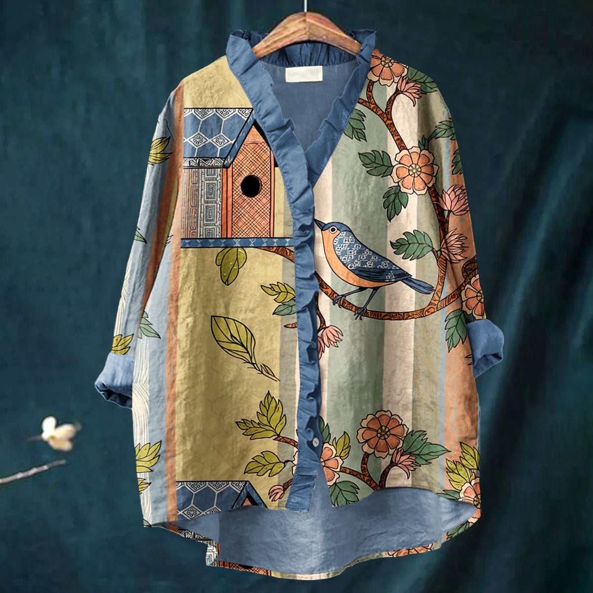 Introducing the perfect addition to your wardrobe - the Niya Ruffle Shirt. This beautiful shirt, made with cotton a nd linen, features concealed buttons, long sleeves. The front frill and neck along with the curved hem add a touch of femininity to this dressy yet casual shirt. With a regular fit, it's the perfect blend of style and comfort.