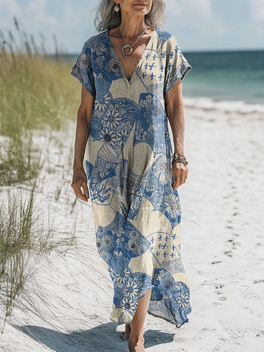 Women's Vintage Floral Book Art Print Pocket Cotton Dress