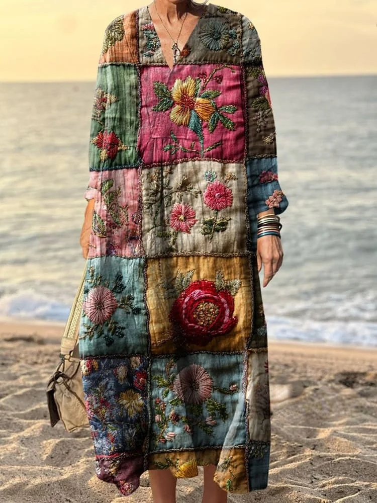 Women's Vintage Dark Patchwork Art Print Dress
