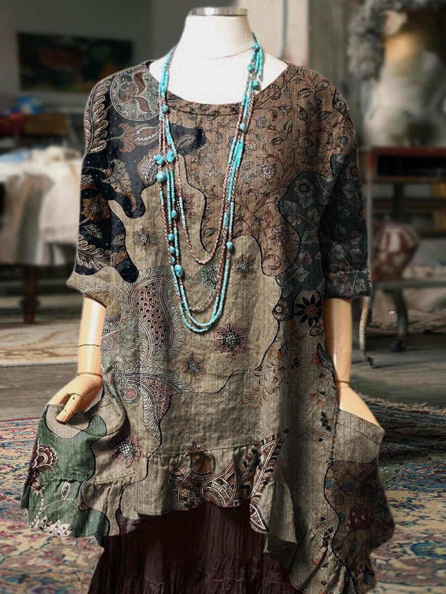 Women's Vintage Pattern Print Pocket Cotton Dress